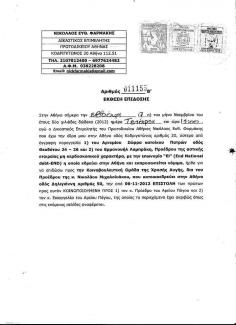ΚΟΙΝΟΠΟΙΩΝΤΑΣ ΕΚ ΝΕΟΥ ΤΟ ΙΔΙΟ ΕΓΓΡΑΦΟ ΣΤΙΣ 8Η ΝΟΕΜΒΡΙΟΥ ΤΟΥ 2012, ΕΝΗΜΕΡΩΝΕΙ ΤΟΝ Γ.ΓΡΑΜΜΑΤΕΑ ΤΟΥ ΚΟΜΜΑΤΟΣ ΧΡΥΣΗ ΑΥΓΗ ΝΙΚΟΛΑΟ ΜΙΧΑΛΟΛΙΑΚΟΥ ΜΕ ΔΙΚΑΣΤΙΚΟ ΕΠΙΜΕΛΗΤΗ ΚΑΙ ΑΡ. ΕΠΙΔΟΣΗΣ 011155Β’ ΩΣΤΕ ΝΑ ΛΑΒΕΙ ΓΙΑ ΔΕΥΤΕΡΗ ΦΟΡΑ ΓΝΩΣΗ ΚΑΙ ΝΑ ΠΑΡΕΙ ΘΕΣΗ.